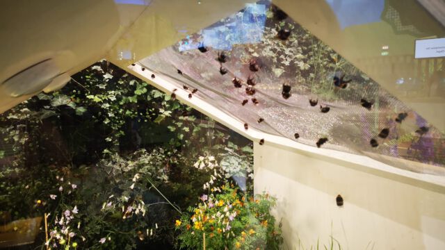 In der Halle des Bundeministeriums für Ernährung und Landwirtschaft (BMEL) hat sich eine Gruppe hilfsbereiter Imkerinnen und Imker für die Bienen und Wildbienen eingesetzt und die Messebesucher*innen über ihre Bedeutung für die Natur aufgeklärt. Sie haben auch einen Schaukasten mit dunklen Erdhummeln betreut und erklärt und den Gästen Honigproben kredenzt und die Vorzüge lokaler Honigproduktion offenbart.