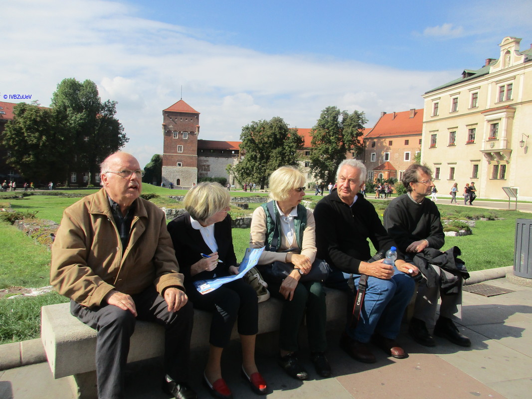 Am dritten Tag Weiterfahrt nach Krakau mit Halt in Wielieczka. Dort befindet sich das Salzbergwerk Wieliczka. Es ist seit 1978 UNESCO-Weltkulturerbe. Die Geschichte des Bergwerks ist auf ein Wunder zurückzuführen. Als die Prinzessin Kinga zur Hochzeit mit Herzog Boleslaw nach Polen kam, war sie einen Brillantring in eine Schlucht und prophezeite, dass dort, wo der Ring wiedergefunden wird, ein Schatz versteckt sei. Die Bewohner von Wieliczka stiegen die Schlucht hinab und entdeckten den Ring auf weiß glänzendem Gold. Salz. Damals im Mittelalter war Salz fast genauso teuer wie Edelmetall. Von einem Bergmann sind wir in die Tiefe des Bergwerks geleitet worden. Viele Treppenstufen ging es hinab. In der Tiefe befindet sich ein Labyrinth von Gängen. Dann tun sich wieder Salzseen, imposante Kammern mit in Salz gehauhenen Skulpturen auf. Auch befindet sich dort eine riesige Kapelle mit Reliefs und Kronleuchtern. Alles – auch die Kronleuchter – sind aus Salz. Täglich besuchen etwa 7.000 Touristen das Salzbergwerk. Eine logistische Meisterleistung der Führer, es so vielen Besuchern zu ermöglichen, sich das Salzbergwerk anzusehen. Das Salzbergwerk ist nicht mehr in Betrieb. Genutzt wird noch das Sanatorium. Mir ist die Luft dort unten gut bekommen. Ich habe sie als angenehm mild empfunden. Krakau gehört ebenfalls zum Weltkulturerbe. Die Stadt wurde während der letzten Kriege nicht zerstört. Daher verfügt die Stadt über einen architektonischen Reichtum und hat dieses Erbe auch archäologisch in den letzten Jahren umfangreich untersuchen lassen. Daraus ist ein sehr sehenswertes Museum unter dem Rynek (Marktplatz) entstanden. Ein Führer hat uns eineinhalb Tage durch die Stadt begleitet. Wir müssen aber wiederkommen, da nicht alles zu schaffen war. Allein mindestens einen Tag braucht der Besucher schon für den Wawel. Der Wawel ist ein monumentales Bauwerk. Ein Zentrum weltlicher und geistlicher Macht. Ein Satz ohne Verb? Auch hier wieder sehr viele Touristen. Ein Besuchermagnet ist die gesamte Anlage. In der Wawel-Kathedrale ließen sich viele Polnische Könige krönen und auch bestatten. Die Kathedrale ist prächtig ausgestattet. Auch von außen. Auffällig ist die goldene Kuppel. Über eine sehr enge Stiege geht es zum Sigismund-Turm hinauf. Unterwegs sehen wir die 1520 gegossene Sigismund-Glocke. Sie ist die größte Glocke in Polen. Ihr Klang soll bis weit hinter Krakau hinaus klingen. Neben der Kathedrale ist das Wawel-Schloss. Sehr elegant sind die dreigeschossigen Arkaden und der weite Innenhof. Im Schloss erwartet uns eine Überraschung: Die Dame mit dem Hermelin. Das berühmte Bild von Leonardo da Vinci wohnt im Schloss. Durch die Drachenhöhle sind wir dann hinabgestiegen zur Weichsel. Vor dem Eingang steht ein großer Drache, der noch täglich Feuer speit. Von dort sind wir zur Marienkirche gegangen. Viele Unterbrechungen waren nötig, weil sich viele Sehenswürdigkeiten auftun. Die Marienkirche steht am Rynek. Es ist das größte und schönste Gotteshaus der Stadt. Wer sie nicht sehen kann, kann sie aber hören. Zu jeder vollen Stunde erschallt vom goldgekrönten Turm eine Trompetenmelodie. In alle vier Himmelsrichtungen wird sie nacheinander geblasen. Sie bricht nach wenigen Takten abrupt ab. Das geschieht in Erinnerung an einen tapferen Turmwächter, dessen Kehle beim Blasen von einem Pfeil durchbohrt wurde. Blickfang in der Kirche ist der berühmte Altar von Veit-Stoß. Ein Traum in Blau und Gold. Herrlich anzusehen. Ein Meisterwerk.