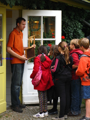 Mindestens einmal im Jahr findet die Monatsversammlung des Imkervereins Berlin-Zehlendorf und Umgebung e.V. im Bienengarten der FU-Berlin an der Königin-Luise-Straße statt. Dann gibt es wieder praktische Hinweise insbesondere für die Jungimker. Doch auch die Alten merken immer wieder, dass die Pflege der anvertrauten Bienen mit immer neuen Erkenntnissen nie einem abgeschlossenen Standard gehorcht.